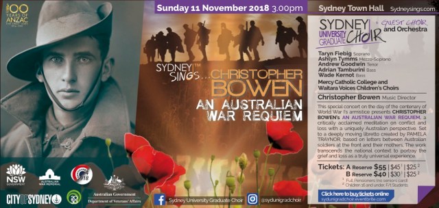 Tickets for our November 11 performance of An Australian War Requiem can be purchased via our Eventbrite site.