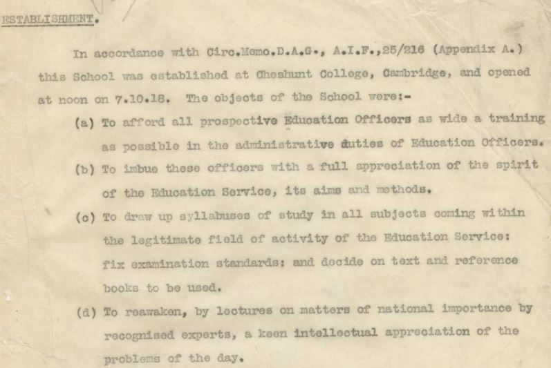 Transferred to Education Service 7 October 1918, returned to England and sent to AIF Educational School Cambridge for course of instruction